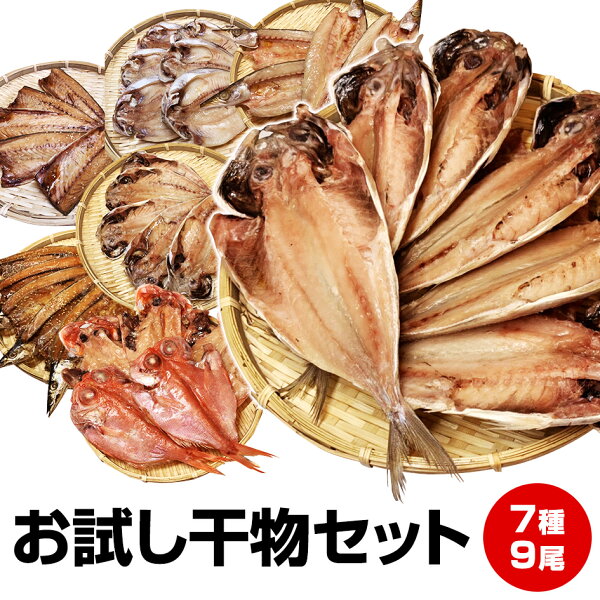 厳選7種9尾メガ盛りお試し干物セット 静岡県産 高級 金目鯛干し(1尾)・大鯵開き干し(2尾)・えぼ鯛干し(1尾)・かます干し(1尾)・対馬鯵開き干し(1尾)・さんま醤油干し(2尾)・平サバ(1枚) 数量1で1セット(9点)の金額となります。