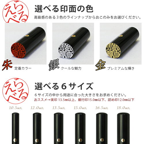 サイズ 10.5mm丸×60mm 12.0mm丸×60mm 13.5mm丸×60mm 15.0mm丸×60mm 16.5mm丸×60mm 18.0mm丸×60mm 最大彫刻文字数は、 10.5mm〜13.5mm 漢字・ひらがな・カタカナ:6文字 英数字:9文字 15.0mm〜18.0mm 漢字・ひらがな・カタカナ:9文字 英数字:12文字 デザイン確認サービス 1案につき別途500円 メール若しくはFAXにて確認いただけます。