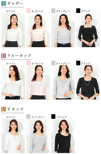 ストレッチ素材七分袖カットソー カテゴリー レディース > トップス > Tシャツ・カットソー > 長袖・七分袖・八分袖 サイズ S / M / L / LL / 3L / 4L / 5L カラー ホワイト(白)・オフピンク・ライトグレー・ブラック(黒) 特徴 ・伸縮性あり ・ご家庭で洗える≪ウォッシャブル≫仕様 用途 普段使いにはもちろん、通勤スーツのインナーとしてやオフィスカジュアルとしてビジネスシーンにも活躍します。