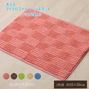 送料無料 バスマット 洗える 吸水 超吸水 マイクロファイバー さらり美人2 吸水マット 2枚組 約35×50cm すべり止め 滑り止め ウォッシャブルバスマット ふわふわ スベスベ おしゃれ 北欧 シンプル