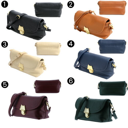 以前の水牛革から、シボが上品な牛革に素材を変更し、傷が目立たないボディに!!そして価格も大幅にプライスダウンして、お求め易い価格になりました!!また、カラーのバリエーションも豊富に!コロンとした丸いフォルムとネコちゃん金具がとってもチャーミング。